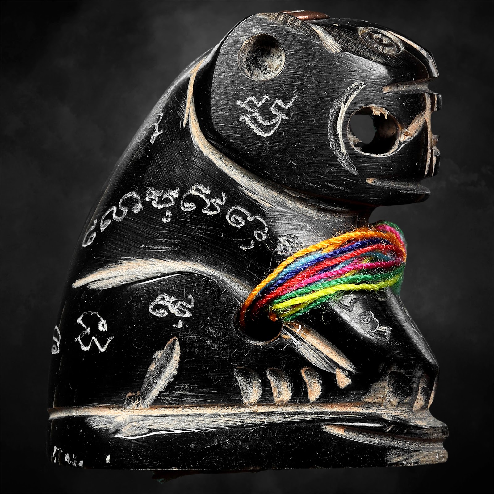 除了水牛角的挑選與雕刻過程,師父還特別在虎王內部嵌入了符管與法粉,這些材料包括: